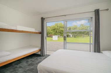– Queen Bed plus 3x bunks (3x singles) – sleeps 5.