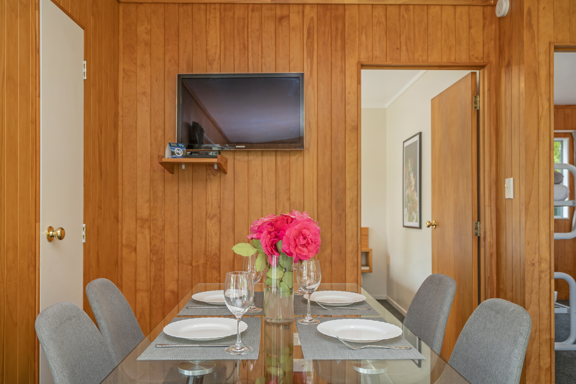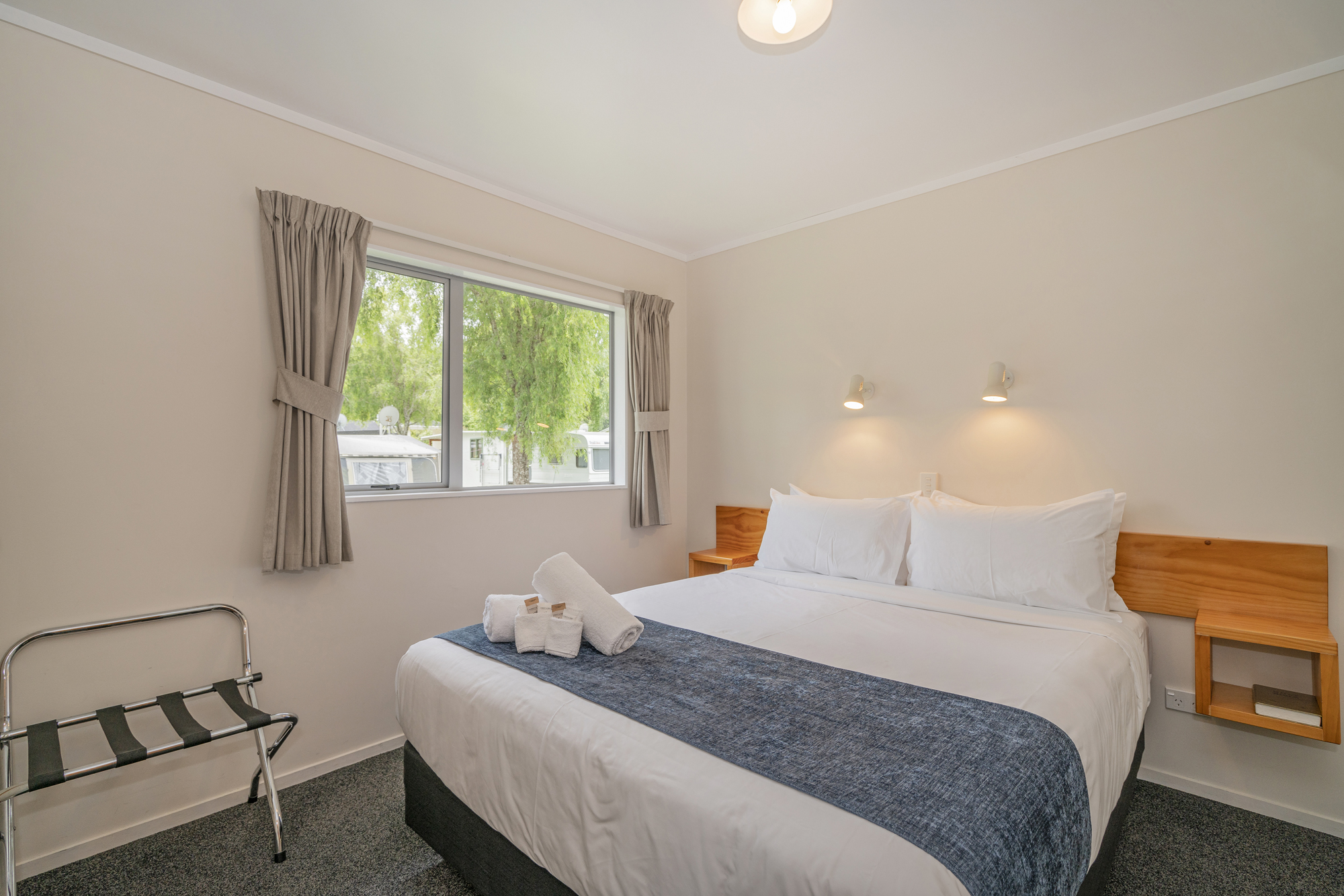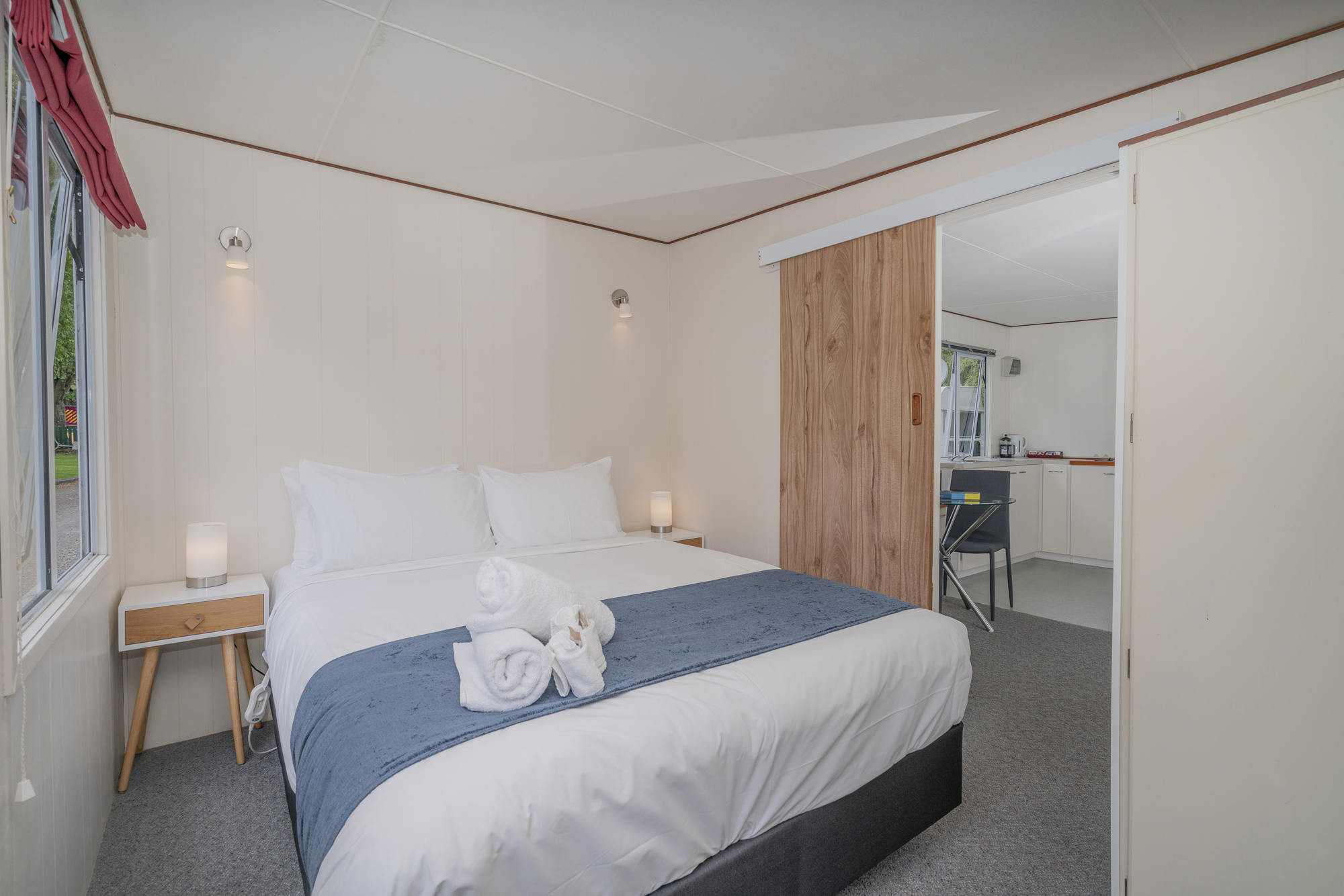 Our Two-Bedroom Family Units are a great option – perfect for a family, two couples or those wanting individual beds. The first bedroom has a Queen Bed, and then the second bedroom comes complete with a Double Bed and a set of bunk beds (two singles).